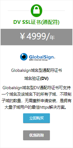目前GlobalSign支持有两种不同类型的通配符SSL证书,有DV和OV两种类型可选,不同验证方式所以在价格上也是不一样。